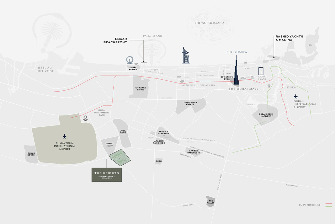 Experience the pinnacle of luxury living at The Heights Country Club & Wellness By EMAAR Properties, located in the heart of Dubai. This premier development, which spans 81 million square feet, offers a refreshing take on modern living with a strong emphasis on wellness and tranquillity, with a development value of AED 55 billion. At The Heights Country Club and Wellness, we are dedicated to improving your life by creating designed spaces that promote health and relaxation.